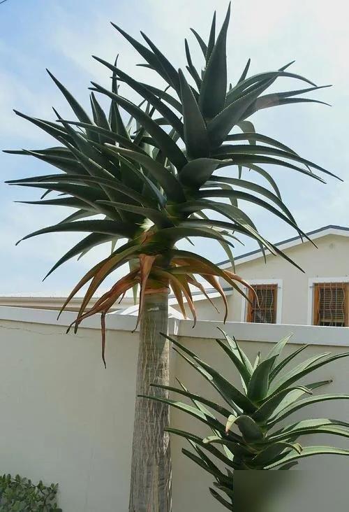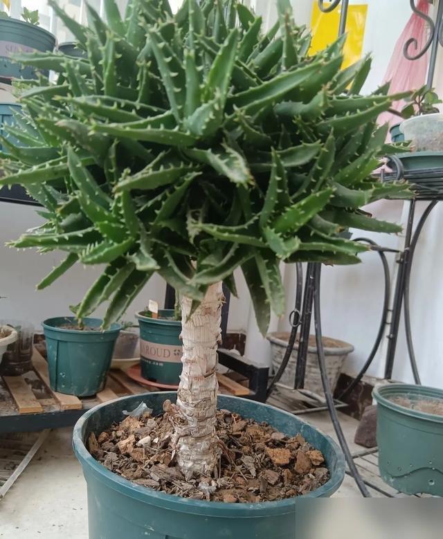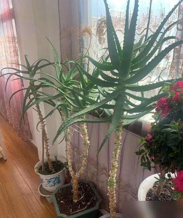 可不是所有芦荟都能当“树”养的!我之前查过,像女王芦荟就爱蹲在地上当“小肉球”,圆滚滚的,再养十年也是“矮胖墩”;但龙爪、中华芦荟不一样,天生就有“往上窜”的劲儿,跟青春期的小伙子似的,给点阳光就想踮脚够天花板。我家那盆就是中华芦荟,当年从花市十块钱买的小幼苗,现在已经快顶到阳台吊灯了——每次朋友来家里,都得仰着脖子喊“你家芦荟要成精啦!”