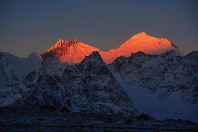 ▲珠峰东坡,洛子峰珠峰日照金山,摄影@nana