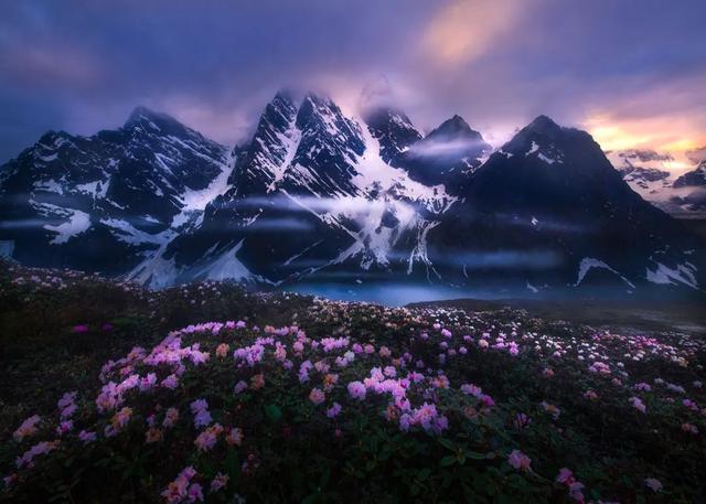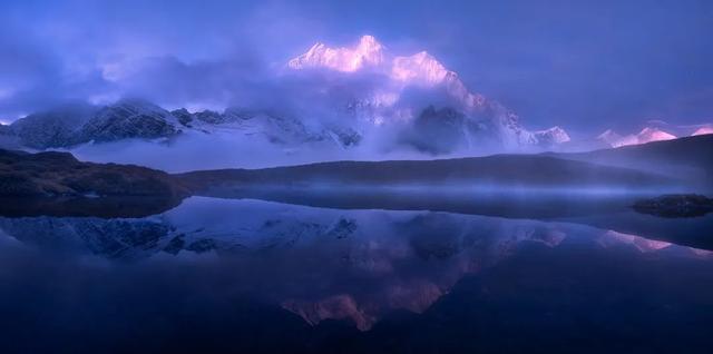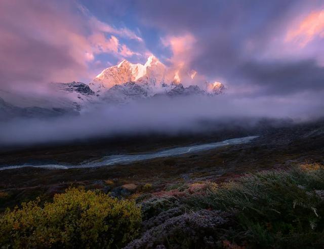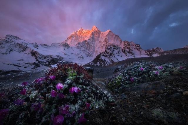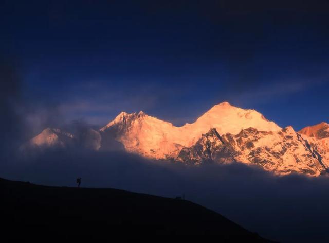 ▲云雾中的洛子峰日照金山,摄影@kaka