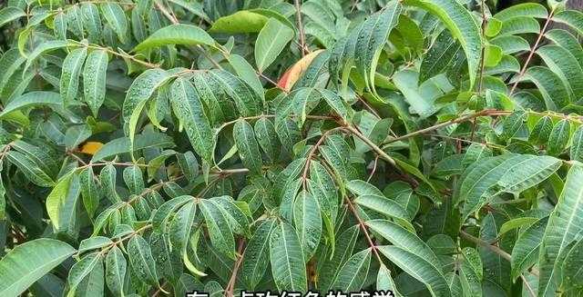 这种害人的植物叶子比刚才说的那种要小一些,形状更像椭圆。最明显的是它的枝干,颜色更红一些,有点像玫瑰那种红色。