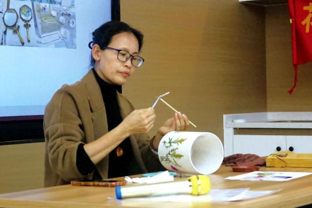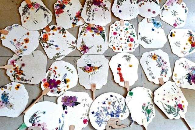 ▲孩子们在广花压花花艺课上制作的团扇