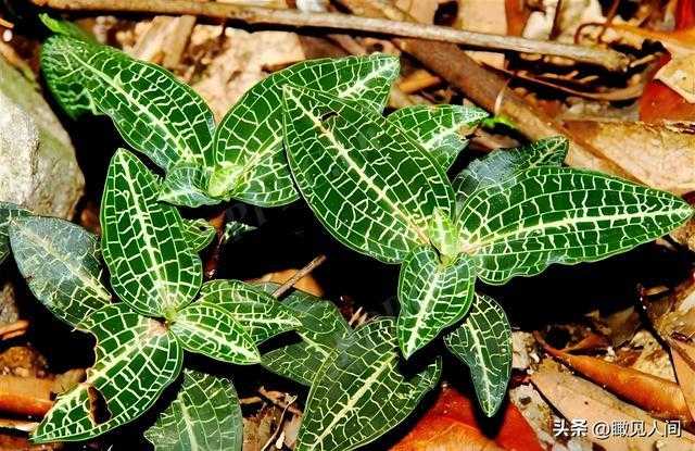 秦岭斑叶兰是兰科斑叶兰属的地生兰,仅见于海拔1200-2000米的阴暗针叶林下。它的叶片基生,卵形,墨绿色叶面上分布着银白色网状斑纹,宛如镶嵌在翡翠上的银丝,极具观赏价值。但它的生存依赖于一种“看不见的伙伴”——与特定的菌根真菌共生。不同于其他植物,秦岭斑叶兰的种子无胚乳,无法自主萌发,必须依靠真菌提供养分;成年后,真菌仍能帮助它从土壤中吸收磷、氮等元素,而它则为真菌输送光合产物。这种“双向奔赴”的共生关系,让它成为森林生态系统健康的“晴雨表”——一旦林下土壤被污染或腐殖质减少,真菌死亡,斑叶兰也会随之消失。