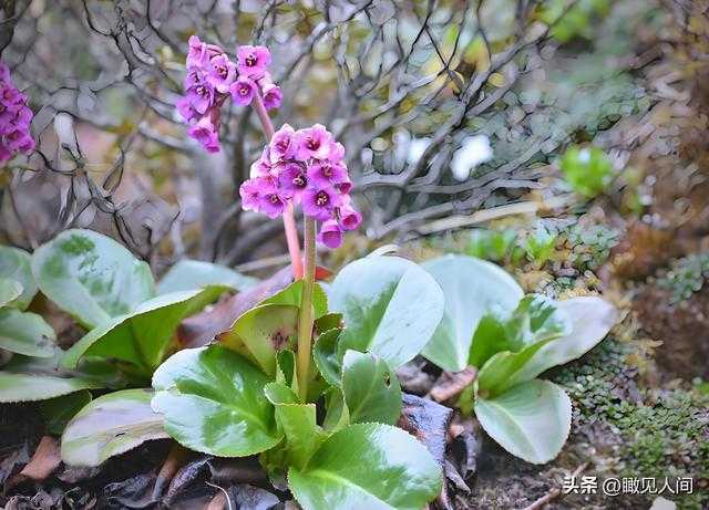 秦岭岩白菜隶属于虎耳草科岩白菜属,是典型的石生植物,常扎根于海拔1000-2000米的岩石缝隙或峭壁。它的叶片呈圆形或宽卵形,肥厚如多肉,表面覆盖着一层蜡质膜,既能储存水分应对干旱,又能反射强光减少蒸发。每年7-8月,粉红色的花序从叶丛中抽出,在灰褐色的岩石背景下格外夺目,宛如悬崖上悬挂的花帘。更令人惊叹的是其生存策略:根系能分泌酸性物质,缓慢溶解岩石中的矿物质,将钙、镁等元素转化为自身所需的养分——这种“啃食岩石”的能力,让它在无土可依的绝壁上站稳了脚跟。如今,秦岭岩白菜不仅是优良的观赏植物,其根茎还含有岩白菜素,具有止咳化痰的功效,却因过度采挖导致野外种群锐减。