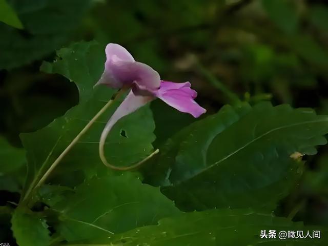 溪谷边的秦岭凤仙花,则演绎着“急流勇者”的故事。它的茎秆半透明,多汁脆嫩,却能在溪流旁的湿滑岩石上扎根;粉红色的花朵距细长弯曲,如凤鸟展翅;最特别的是果实——成熟时稍碰即裂,能将种子弹射到数米外的河滩地,精准落在湿润的生境中。这种“主动传播”的策略,让它在溪水冲刷的环境中代代相传。