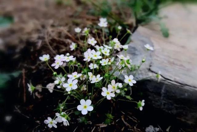 点地梅植株低矮,花很小,形似梅花,盛花时如繁星点点,一片雪白,别有姿韵。