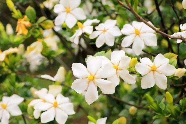 原生栀子花品种,单瓣花,但花朵特别香,凋谢后还会接橙红色果子,可以用来当涂料哦!