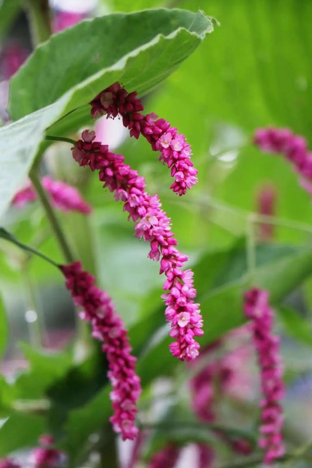 水蓼的 花呈穗状,悬吊在纤细的花梗上随风摇曳,颇有田园风味!