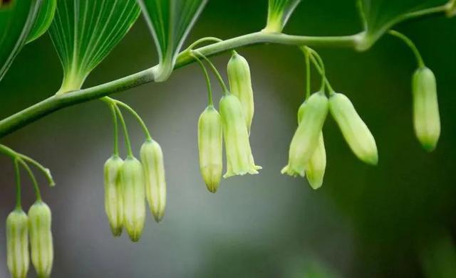 花开时节,玉竹几乎每张叶片下都能长出3个绿白色的“小铃铛”,好可爱!