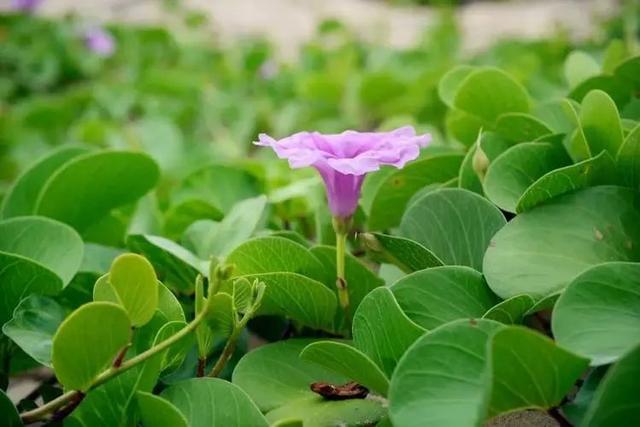 乍看花朵你可能也会把它认成打碗花或者牵牛花,但两者都不是。厚藤有着紫色或深红色花冠,整个植株如其名,都极具厚实感!