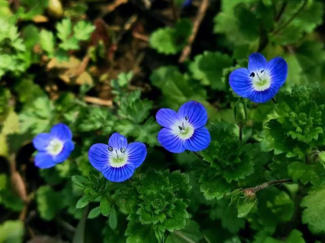 婆婆纳的花很小,花径只有4-5毫米,但花量大,花色也很丰富,有淡紫色、蓝色、粉色或白色。