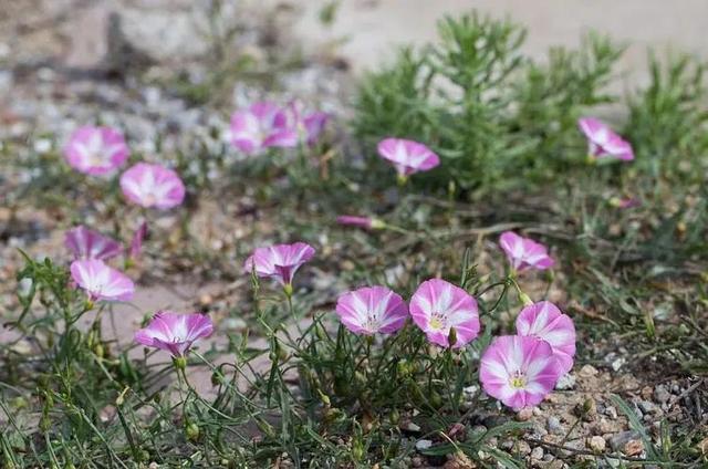 很多人都会将田旋花与打碗花混为一谈,然而他们并不是同一物种哦!田旋花的花朵偏紫,植株更纤细一些,你能分清吗?