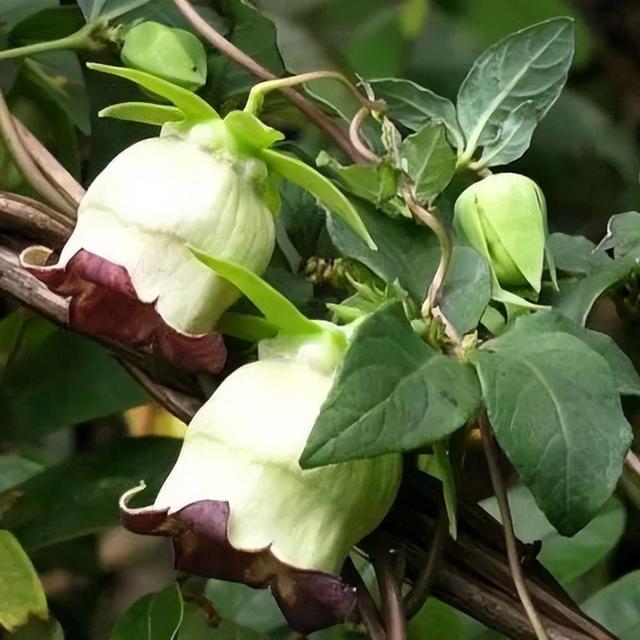 奶参是多年生缠绕草质藤本,因折断有乳汁故而得名。它的花像一个钟,呈黄绿色(或乳白色)内有紫色斑,肉肉的。