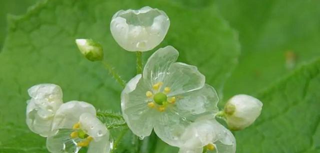 一种白色的小花朵,它在淋雨后会变成透明的“小冰花”哦,特别神奇!
