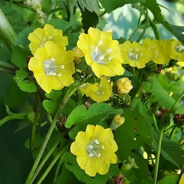 单看篱栏网的花朵是不是和月见草的花朵非常相似,但是它是黄色的,藤蔓型的。