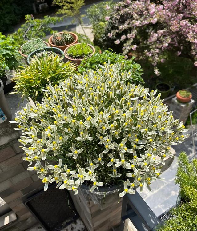把三棵小苍角殿种在30厘米长条盆里,前排塞两棵姬星美人,后排扔一棵蓝羊茅。春天姬星美人开粉花,蓝羊茅抽蓝穗,中间小苍角殿飘奶香,视觉、嗅觉、触觉一次打包,比买香薰机划算多了。数据说话:同样10㎡阳台,摆香薰机日耗电0.3度,一年电费够买五盆黄金小苍角殿,而后者能陪你赏花闻香三年朝上。