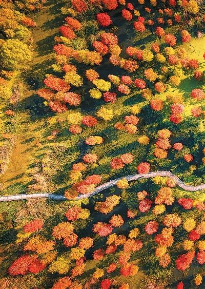 秋末冬初,池杉湖国家湿地公园内层林尽染。 来安县委宣传部供图