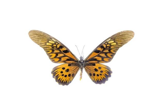 除此之外,蝴蝶还有很多令人惊叹的生存之道,比如擅长隐蔽型拟态的枯叶蝶,张开翅膀是亮丽的金属色,合上翅膀看起来就像一片枯叶,上面还精巧地布置了类似霉斑、虫蛀、破损的斑点,一旦遇到危险就躲进落叶里合上翅膀,让敌人误以为自己是不值一提的败叶,以此躲过一劫。