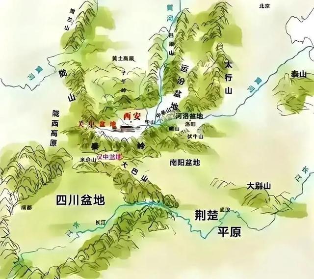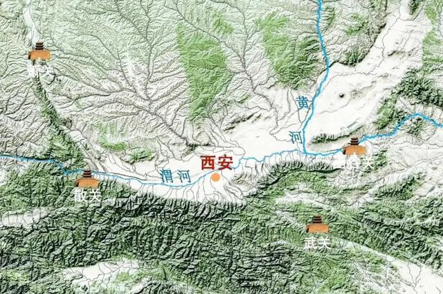 关中平原四面都是天险,东边是黄河和潼关,南边是秦岭,西边是陇山,北边是黄土高原。敌人要打进来,必须通过几个狭窄的关口,防守方占尽地利。