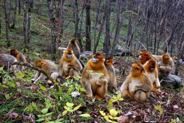 秦岭金丝猴数量约4000多只,是川金丝猴的一个亚种,毛色金黄,在雪地里像一团火焰。