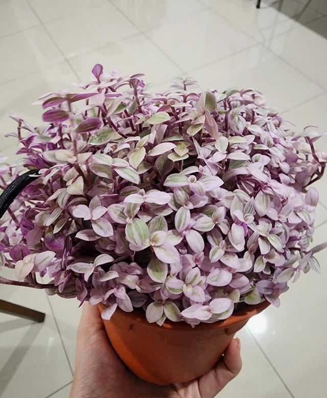 它的茎匍匐生长,而且有很多的分枝,叶子是卵圆形,出状态的时候,颜色是粉嫩的,上面有一些绿色条纹,密密麻麻的枝叶长爆盆时,给人粉嫩可爱的感觉。