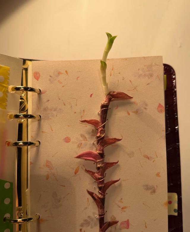 铺地锦竹草并非是想卷上天,而是它真的生长很强健,茎能在手账本中生长,也是有原因的: