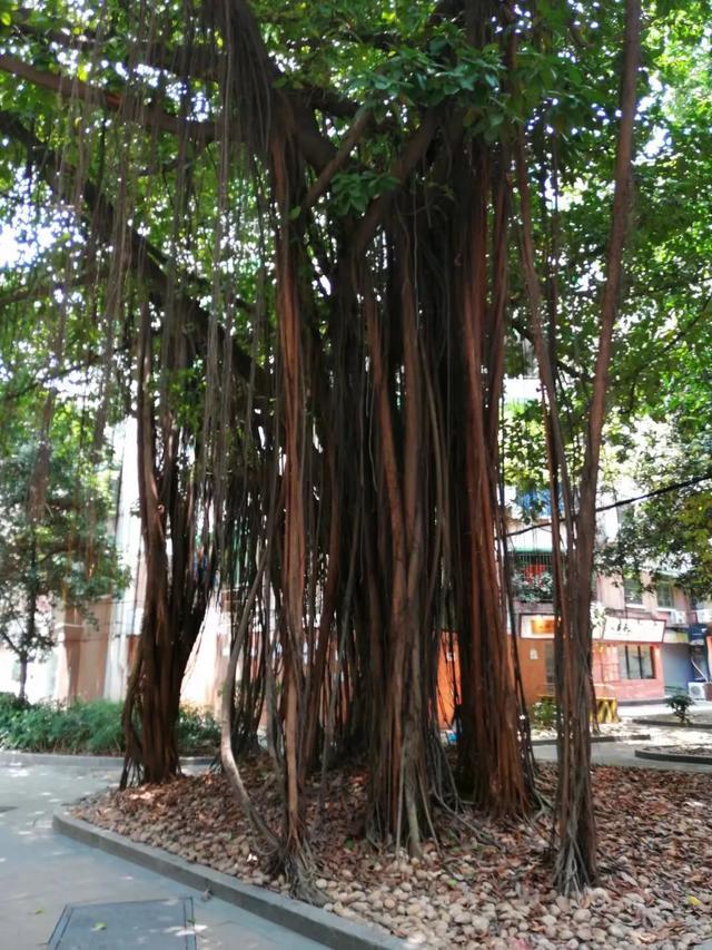 最早我记得几十年前在南海官窑镇打工的时候,官窑电影院的门口就有好几棵大榕树,树干很大,几个人都合抱不过来,树枝树叶自然茂盛。