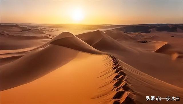 3.最大的沙漠 —— 撒哈拉沙漠位于非洲北部,总面积约932 万平方千米,几乎与美国本土面积相当。这片沙漠气候极端干旱,昼夜温差极大,遍布沙丘、砾石荒漠和盐滩,同时也藏着古老的岩画和绿洲文明遗迹。