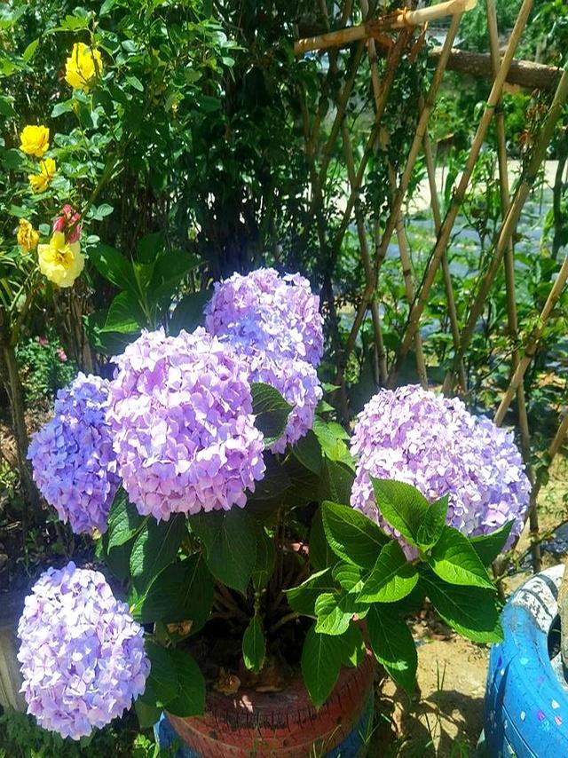 日本东京大学做过标记实验,给绣球用三十厘米深但直径六十厘米盆,开花量是直径三十厘米盆的三点四倍,深度一样,差别只在横向空间。