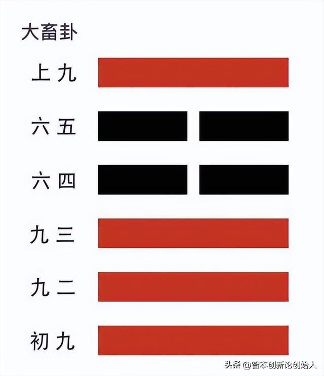 朱熹在《周易本义》中认为:"大,阳也。以艮畜乾,又畜之大者也。" 朱熹从卦变的角度分析,认为此卦自《需》而来,九自五而上;从卦体看,六五尊而尚之;从卦德看,又能止健。