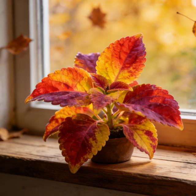 彩叶草是秋季的“色彩担当”,叶片上交织着红、黄、紫、绿等多种颜色,像一幅绚丽的油画,颜色会随着温度降低变得更加浓郁。它的植株小巧,适合摆在书桌、窗台,或与其他绿植搭配造景,瞬间提升空间的层次感。彩叶草喜光也耐半阴,秋季养护要保证充足光照,叶色会更鲜艳,浇水遵循“见干见湿”即可。