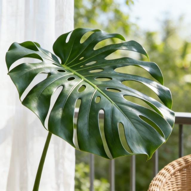 大型龟背竹的叶片宽大厚实,裂叶形态独特,像一把撑开的绿伞,摆在客厅能遮住部分阳光,让室内光线变得柔和。它的叶片表面光滑有光泽,深绿色的底色自带降温效果,搭配简约的水泥盆或陶盆,高级感拉满。夏季养护要注意通风,盆土保持微湿,避免积水烂根,偶尔向叶片喷水,既能增湿又能清洁叶片。