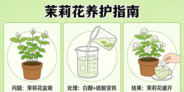- 茉莉花可以用“白醋:硫酸亚铁:清水=1:1:1000”,每月两次,花序更密、花期拉长,做茶更香。