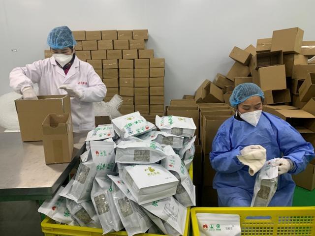 张家界农夫茶业有限公司员工正在打包莓茶产品。