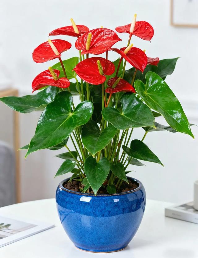 耐阴好养,适合室内摆放,花期长、颜值高,不管茶几、玄关、客厅角落都能放,网友评价:红掌一摆,整年红火,好运挡不住。