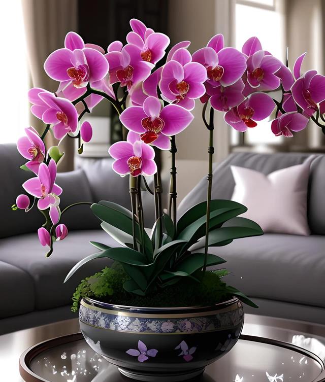 花型像蝴蝶翩翩起舞,寓意幸福美满、好运临门、事业顺遂,花色雅致大气,不管中式、现代、轻奢装修都能搭,摆在家里高级感十足,待客特别有面子。