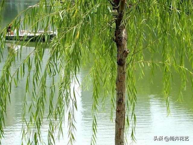 柳丝轻扬,带着嫩黄的新芽,线条柔软飘逸,是插花中灵动线条的最佳灵感