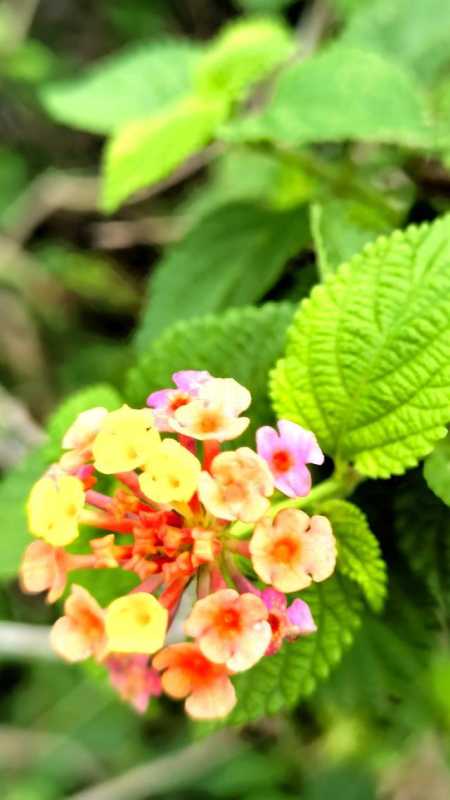 它最具辨识度的特征是变幻的花色:由数十朵小花簇拥成球形花序,初开时为明黄或橙黄,随后渐变为橙红、粉红乃至深红,同一株上常能看到黄、橙、红、粉等多色并存,宛如打翻的调色盘,这也是“五色梅”“七变花”别名的由来。其花期极长,在温暖地区几乎全年绽放,是优良的蜜源植物,能吸引蝴蝶、蜜蜂等昆虫造访。