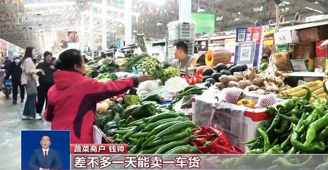 蔬菜商户钱帅:我们主要是卖南方菜,差不多一天能卖一车货,大约是2000斤左右。