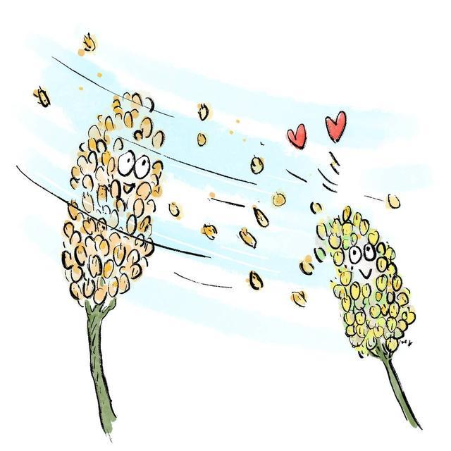 目前全球已知有10%~18%的植物采用这种方法,我们身边常见的包括悬铃木、白蜡树和各种松柏在内的多种绿化用树以及铺满草坪的各种禾草都是风媒家族的成员。在每年的繁殖时期,它们会释放出大量花粉,我们甚至可以用肉眼直观地看到松树林下常铺着一层淡黄色的松花粉。