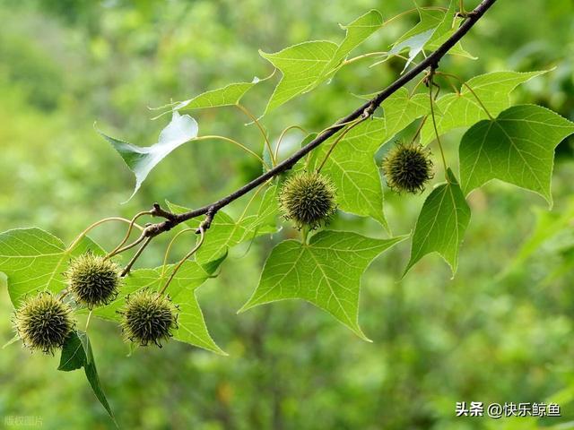 春开黄绿雌雄花,秋果圆似刺球悬。