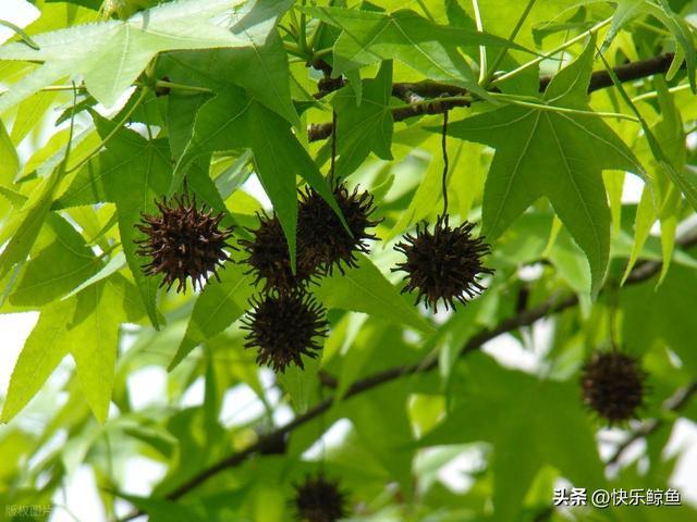 乳汁与树皮:折断枝条会流出有香气的白色树脂(白胶香);树皮幼时灰白色,平滑,老时变灰褐色,呈不规则薄片剥落,区别于乌桕的深纵裂、悬铃木的大块脱皮。花果特征:花单性同株,雄花短穗状,雌花头状;蒴果球形,木质,具刺状宿存萼齿,成熟后开裂成 “路路通”,冬季常宿存枝头,是典型识别特征。