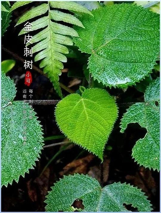 荨麻科的植物大多都有刺毛,但大部分只是让你痒一下,过几个小时就好了。金皮树的"亲戚"——我们国内常见的荨麻草(也叫"蜇人草"),被扎了也就是火辣辣一阵,冰敷一下就没事了。