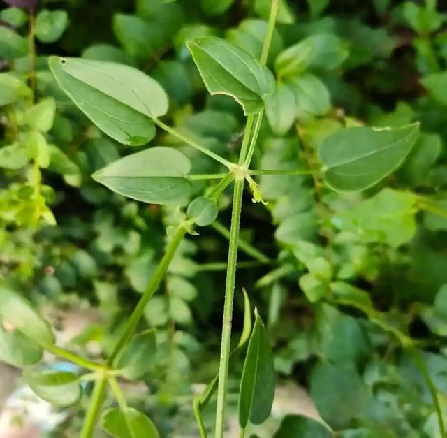 叶:叶4枚轮生(实际为对生,但托叶叶片状,与真叶大小相似,形成假轮生),叶片纸质,卵形、披针形至心形,长2–6厘米,宽1–3厘米,基部心形或圆形,全缘,叶脉3–5条基出,叶脉及叶柄上亦具细小倒刺。