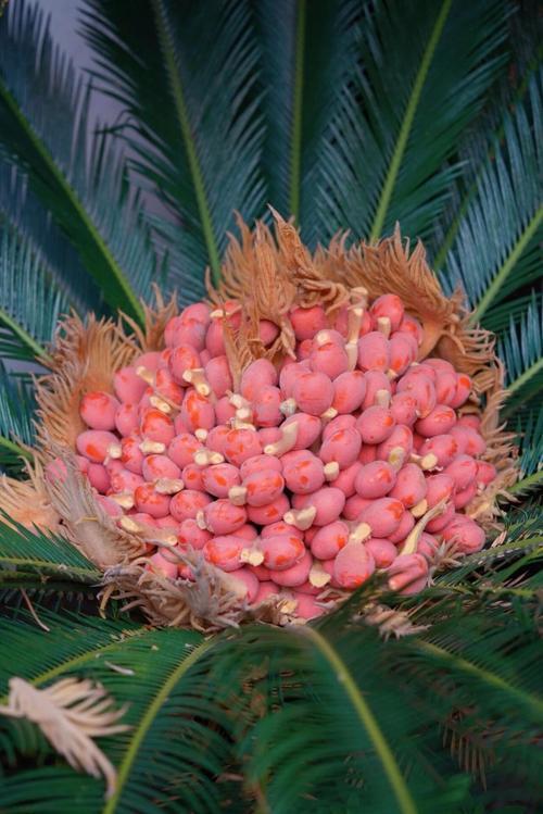 “铁树开花”难得一见,“铁树结果”更是稀有。铁树果别名“凤凰蛋”,外表呈红色,捏起来硬硬的,有细绒毛,形状像鹅卵石。虽然好看,但千万别吃——全国多地都报道过误食中毒的案例。武汉两位大妈在公园游玩时看到铁树结果,好奇尝了尝,2小时后胸闷恶心送医;广西7名儿童用铁树果仁与鸡蛋煮汤,结果集体中毒。铁树对温度和湿度要求极高,能在南方开花结果已属不易,观赏即可,千万别嘴馋。