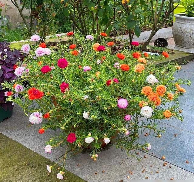 一朵花能掉下一大串小种子,次年春天整个院子都会冒出同样的太阳花苗。