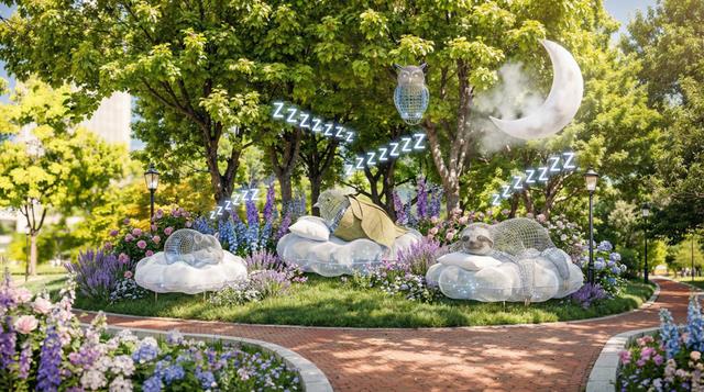 市民漫步其中,既能欣赏五彩缤纷的花卉卡通形象,又能同步闻到与之呼应的香氛,在视觉与嗅觉的双重体验中,获得情绪的舒缓与放松。