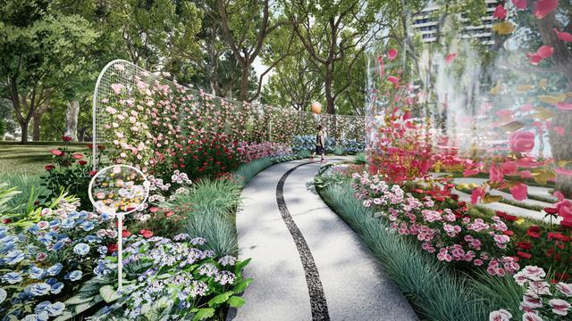 “它不是传统的公园,而是一个市民可以自由自在逛吃、休闲的地方,所以也摒弃了传统花展的片区感、边界感,变得更加开放、贴近生活。”一位花园设计师说。