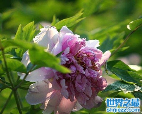 牡丹名贵品种“酒醉杨妃”开粉紫色,盛开顶部为粉红色。由于植株枝条柔软,花头下垂,纤纤醉态,故名“酒醉杨妃”。