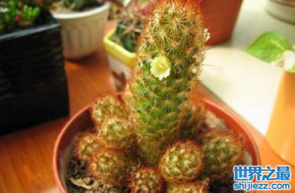 金手指仙人球的形状比较特殊,是长形的,就像人的手指一样。仙人球上长满了经黄色的绒刺,相比其他拥有较为锋利的刺的仙人球,金手指更为柔和,非常适合家庭养殖,也不怕小孩受伤,新手养殖也没有难度。