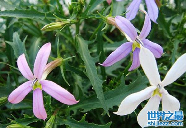 彩星花是桔梗科同瓣草属植物,别名流星花。彩星花叶片狭长,叶缘呈不规则的深锯齿状,花着生顶部,先端花瓣五裂,像星状。原产地为大洋洲,喜光、喜温和湿润凉爽气候,冬季不耐寒。彩星花的样子很好看,但是会散发出腐肉的气味,花瓣上还生长了大量的毛。